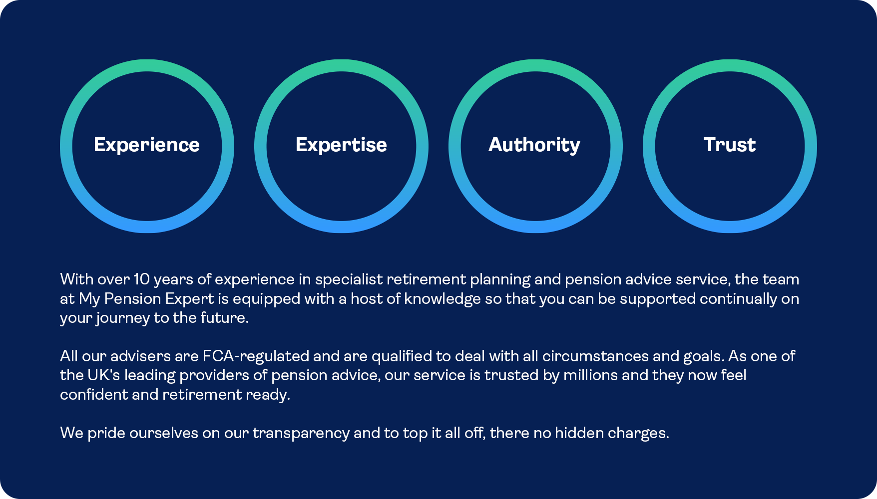 At My Pension Expert, our clients come first. So, we’ve made it our mission to provide a seamless experience with comprehensive pension advice that’s tailored to you and your retirement goals.